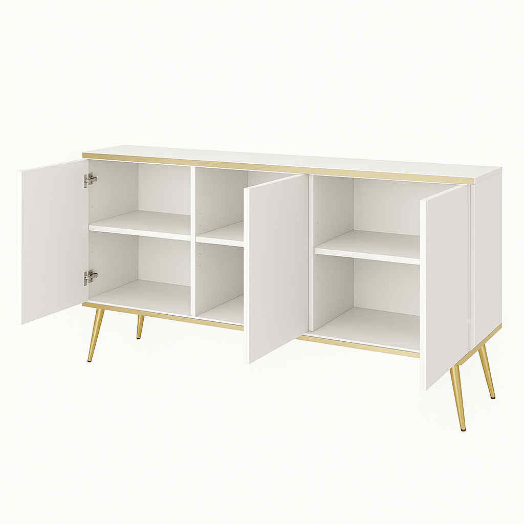 Mia Biała to trzydrzwiowa komoda, która zachwyca minimalistycznym designem i subtelnym blaskiem. Jej biała, lśniąca powierzchnia w połączeniu ze złotymi detalami tworzy nowoczesny, a jednocześnie ponadczasowy mebel, który idealnie dopełni wnętrze salonu, sypialni czy przedpokoju.