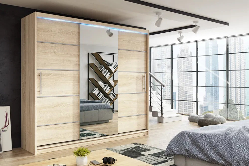 Szafa Przesuwna Garderoba z lustrem TIO3 180cm do Salonu i Sypialni