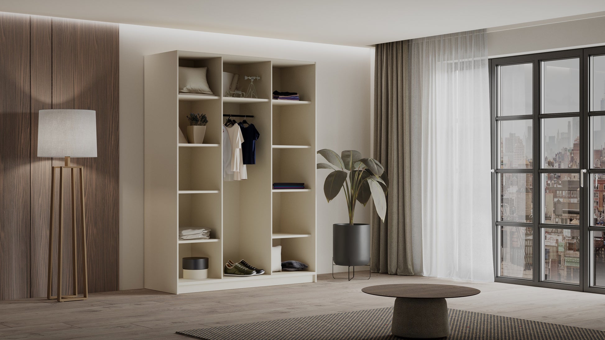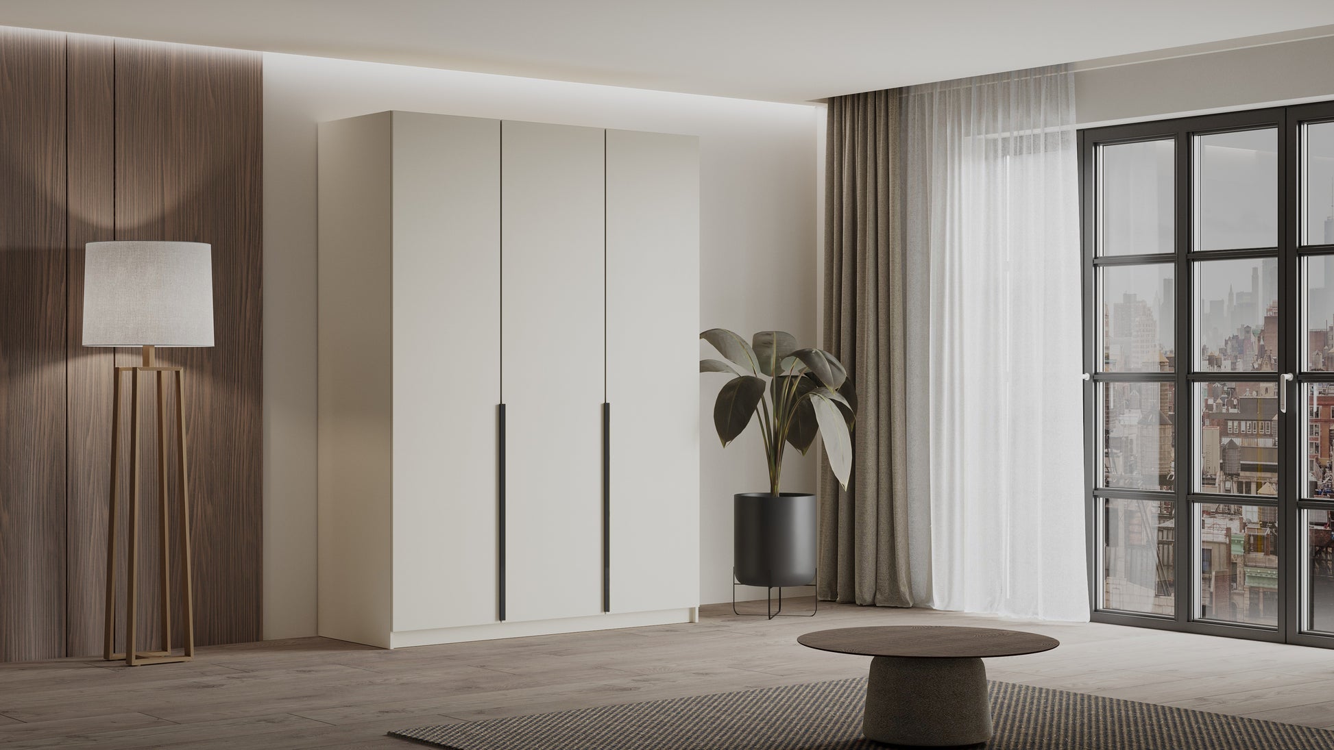 Kaszmir Soft 150 to kompaktowa szafa uchylna stworzona z myślą o nowoczesnych wnętrzach, w których liczy się zarówno funkcjonalność, jak i subtelna estetyka. Ciepły, neutralny odcień kaszmiru wprowadza do pomieszczenia poczucie spokoju i wizualnego ładu, a aluminiowe uchwyty – dostępne w dwóch kolorach – pozwalają dopasować szafę do preferowanego stylu.