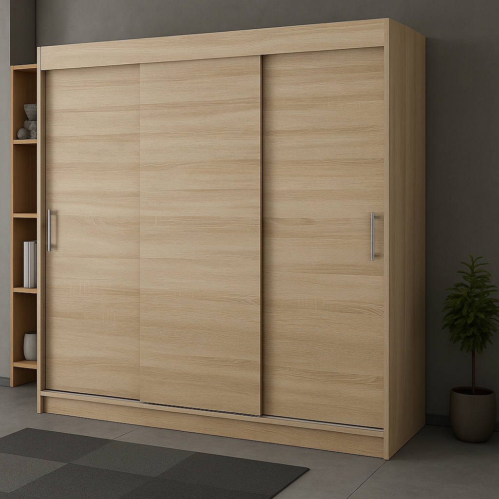 Tio 2 to idealne połączenie praktyczności i domowego ciepła. Zestawienie bieli i dekoru dąb sonoma tworzy przyjemny, ponadczasowy wygląd, który doskonale sprawdzi się zarówno w nowoczesnych, jak i klasycznych wnętrzach. Srebrne uchwyty relingowe dodają elegancji i ułatwiają codzienne użytkowanie, a system drzwi przesuwnych sprawia, że szafa świetnie sprawdzi się także w mniejszych przestrzeniach.