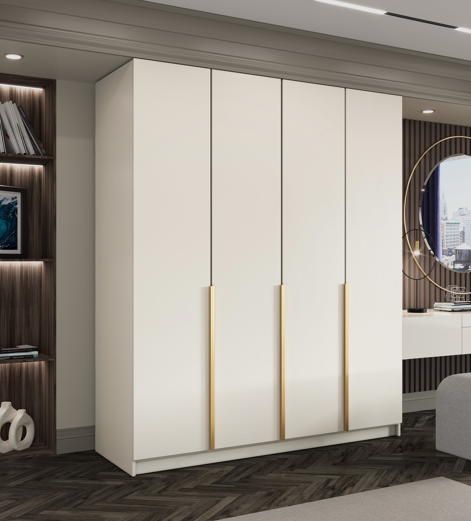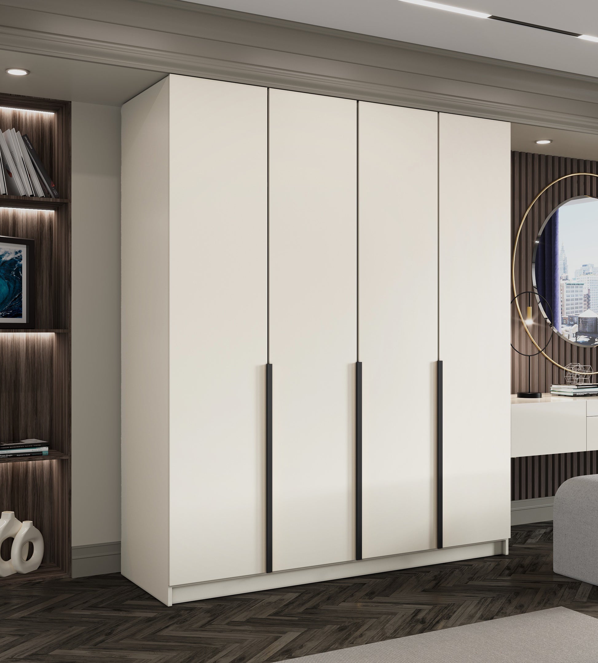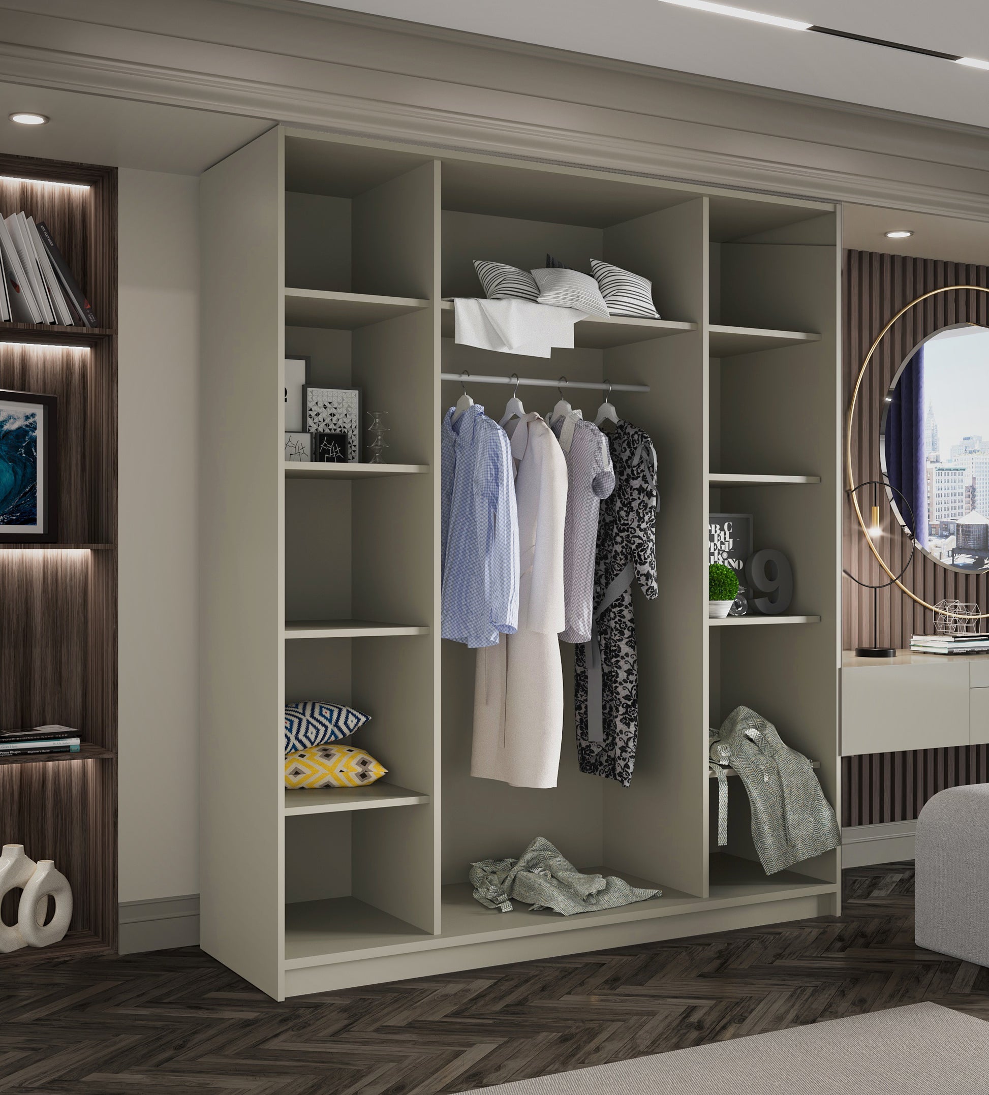 Dostępność uchwytów w dwóch kolorach – złotym lub czarnym – pozwala na konfigurację szafy do różnych stylów aranżacyjnych – od eleganckich po industrialnych.